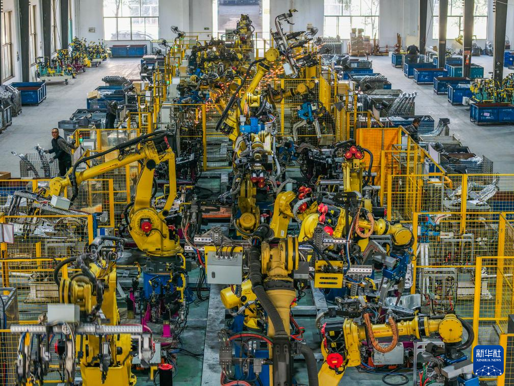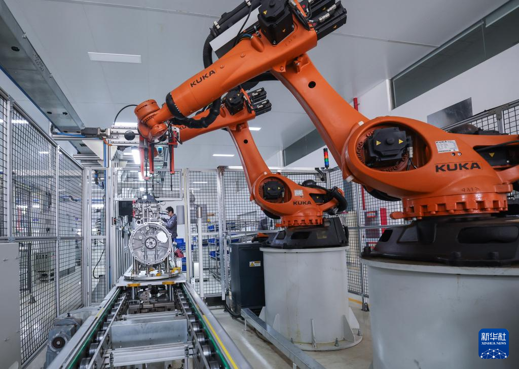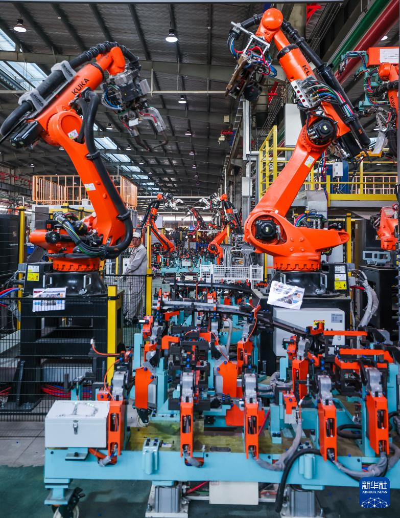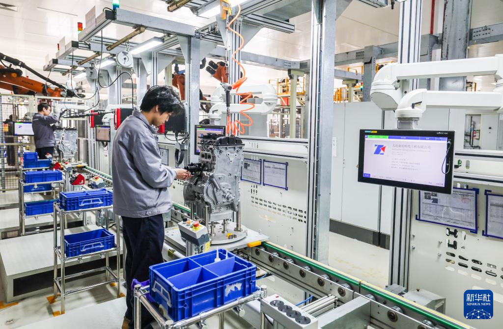 11月27日,在位于金华市金东区的佳通汽车科技(浙江)有限公司的生产车间内,自动化设备在加工新能源汽车的配件。