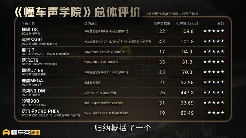 懂车帝相关负责的人介绍,节目中所有车型全部为懂车帝委托第三方在全国4S店随机自购或租赁,车辆均为消费者能买到的量产车型,车辆内外部无后加装的非原厂附件,所有音响单元均为原厂,且并未加装额外功率放大器、超低频音响,和普通消费者的体验一致。